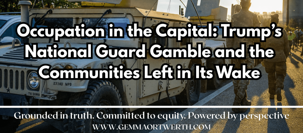 Globally, similar tactics have marked authoritarian shifts. From the suppression of pro-democracy protests abroad to the targeting of Indigenous land defenders, the pattern is consistent: once armed control of civilian spaces is normalized in one context, it becomes easier to justify in others. These parallels matter because they show that what happens in D.C. does not stay in D.C. It sets precedent.